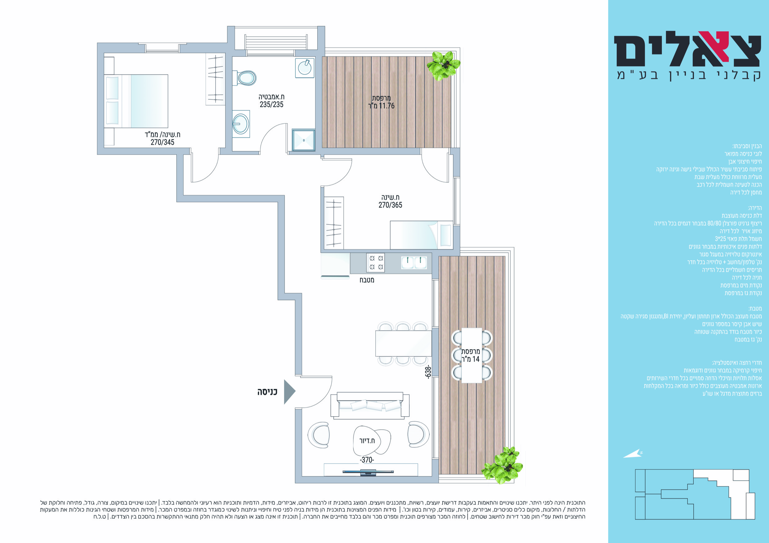 ציפר 5 - תוכנית 3 חדרים אחורית קומה א